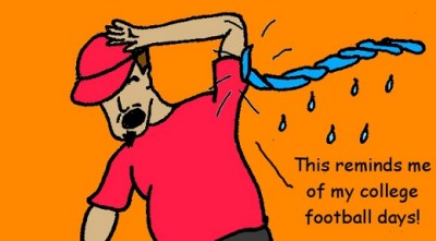 The preliminary eliminations were a mixed bag. You had enough distance to be able to effectively dodge even the most powerful throws as long as you kept your guard up. It was even better if you didn’t try. Whether I tried or not depended on how deluded I was that week that I could be accepted into the jock group. Occasionally a blow could string pretty good–especially with certain jocks throwing–but all in all it wouldn’t be terrible.
