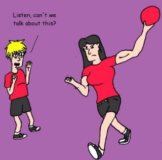 It’s unfair to say that all women aren’t good at sports. Some women aren’t good at sports, just like some guys aren’t good at sports. However, some women are incredibly strong, just like some guys are incredibly strong. Some women are built like Andre the Giant. Sometimes dodgeballs make whistling noises through the air like a fighter jet screaming through the gym when they’re thrown by some girls. Sometimes dodgeballs explode upon impact with the force some girls throw them. Just like it’s unfair to pit a thin, athletically challenged girl against a tall, strong, football player, it would seem to be equally unfair to pit a fat, unathletic boy against a tall, strong, broad-shouldered, athletic girl.