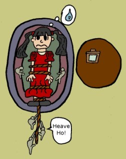 Let me give you an example. Later in the movie, after some of the “build up”, the monsters reveal themselves to the rest of the family and begin trying to steal the girl away. They take a rope and tie her up and drag her across the room at one point. Basically, the climax of the movie hinges on a scene similar to Gulliver encountering the Lilliputians on his travels. TERRIFYING!!!