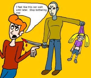 If there were a serial killer in the house, and you knew they were after your child, would you just shrug and say, “Meh, this can wait until tomorrow.”