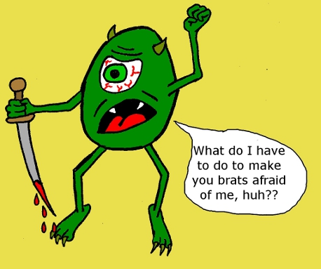 In addition, by making them real creatures, they made them bound by the physical laws of our world—gravity, Newton’s Laws of Motion, etc. At one point, Sally smashes one of them to death with a flashlight. You even see its little guts. So these things can die. So you actually couldkill one of them by accidentally stepping on them. Their little bones would snap like matchsticks.