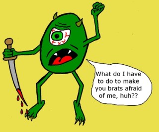 This is a problem that the media has been telling us about for a long, long time. Parents continually find themselves outraged over the media and how risqué it’s become. In I Dream of Jeanie, the title character had to have her bellybutton filled in with putty because the sight of a woman’s navel would send the adolescent male into a screeching, sex-crazed rage, apparently. In The Brady Bunch, somehow the Brady family managed to function in a house without a single toilet. Hell, the entire plot of Monsters, Inc.revolves around how much harder it is to scare kids these days when they’re so desensitized.