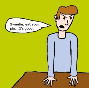 There’s another really weird scene between Sally and her dad where she refuses to eat apple pie because it has gluten in it. Her dad gets made and demands she go to her room. All over whether or not she should eat pie. He gets really aggressive about it, too. At first it’s just a suggestion, but the mention of not eating gluten pushes him over the edge and he practically tries to shove the pie down her throat.