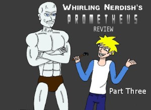 This is it, ladies and gentlemen. The final segment of my Prometheus review. I know I’ve spent many words complaining about this movie, and there are many words left. I’ve already demonstrated the largest flaw of the movie is that characters’ actions are often dictated by what should happen next in the plot, and not what makes sense for that character. The movie’s tone is so mismatching that there are sequences that don’t match the movie that they seem to have made–which very well might have been a pre-production issue–and often they have to shoehorn plot elements in very clumsily to ensure that things happen the way they want.