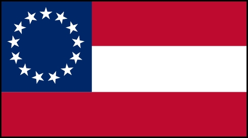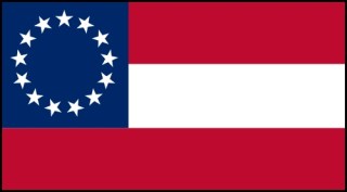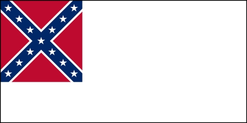 The flag that everyone commonly refers to as the stars and bars (aka the rebel flag, the Confederate flag, etc), is not the actual stars and bars. That would be the flag featured above. This flag was designed partially because the people of the south didn’t want to totally abandon the stars and stripes of the United States. However, I guess they did too good of a job mimicking the US’s flag, because the two flags kept getting confused during battle.