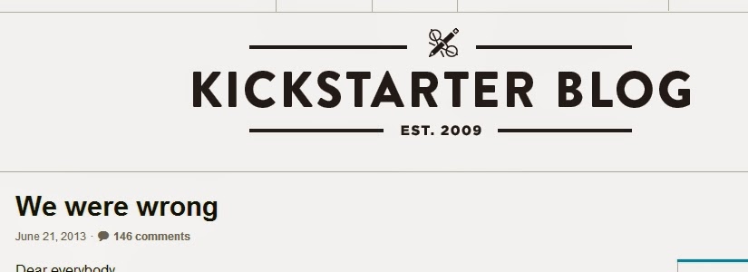 HOWEVER, Kickstarter has finally released a public statement on their blog, aptly titled “We Were Wrong.”
