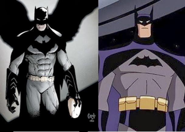 You know who needs a lot of bulk to be played to remain true to the comics? Batman. Here he is depicted in his current comic as well as his representation in the Justice League TV show.
