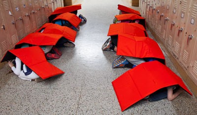 But, c’mon people. Look at the above picture. Those are children laying on the ground, hiding under bulletproof blankets in an attempt to survive the next time someone decides to shoot a bunch of kids at a school.