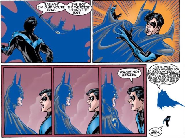 For an example of how this exact concept can be done to great effect, go grab a copy of JLA/Titans: The Technis Imperative. In that book, Cyborg–who is currently a planet eating spaceship (don’t ask), starts gathering up all of the former Titans and putting them in virtual reality pods in which they live through what he think is what they want most and will make them happy. That is met with humorous and heartbreaking results, as below.