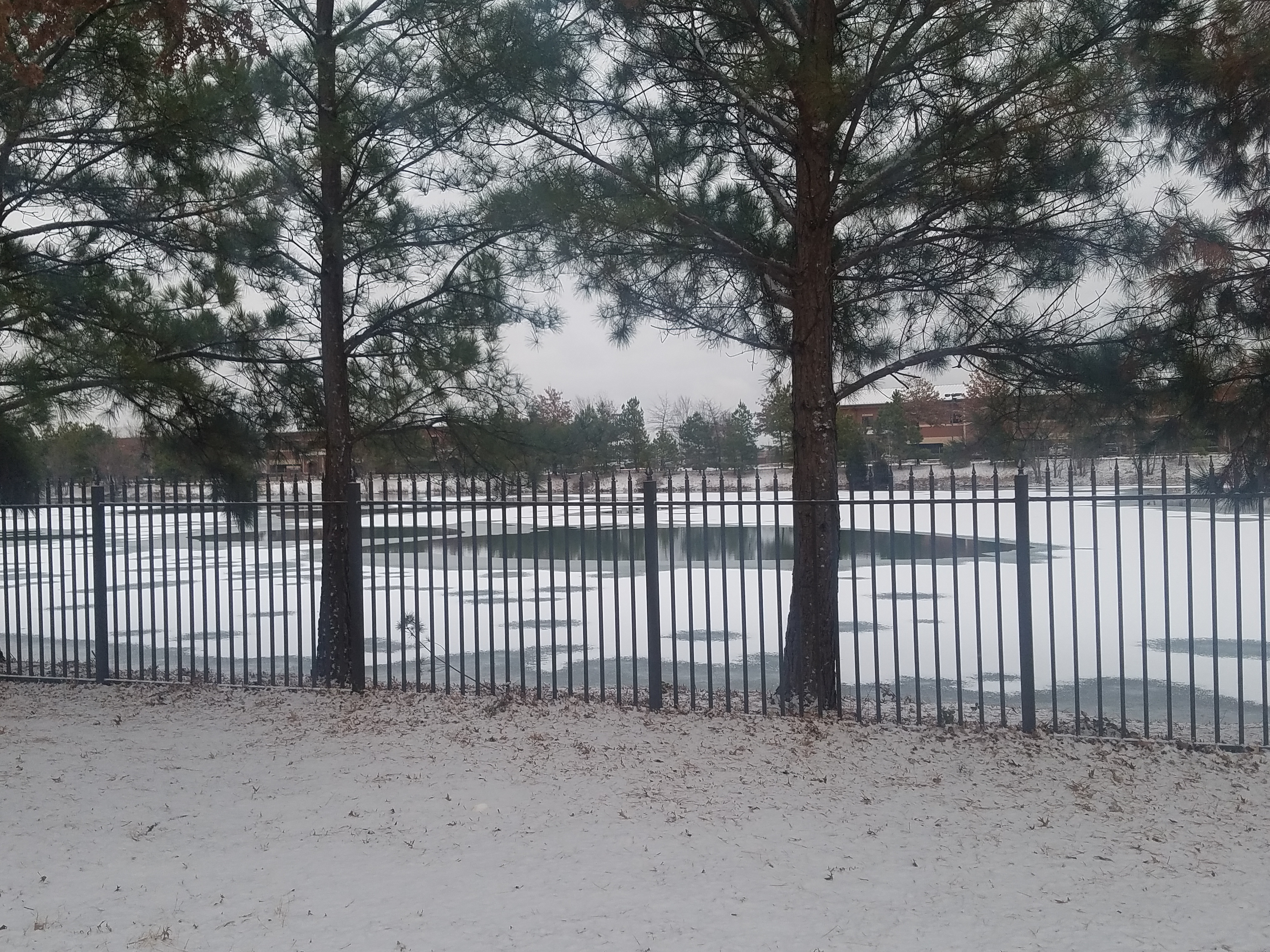This picture is actually from Friday. It got so cold the lake froze over, and then it started snowing big, heavy flakes. It didn’t get more accumulated than this, though — the snow quickly tapered off. Still a nice moment.